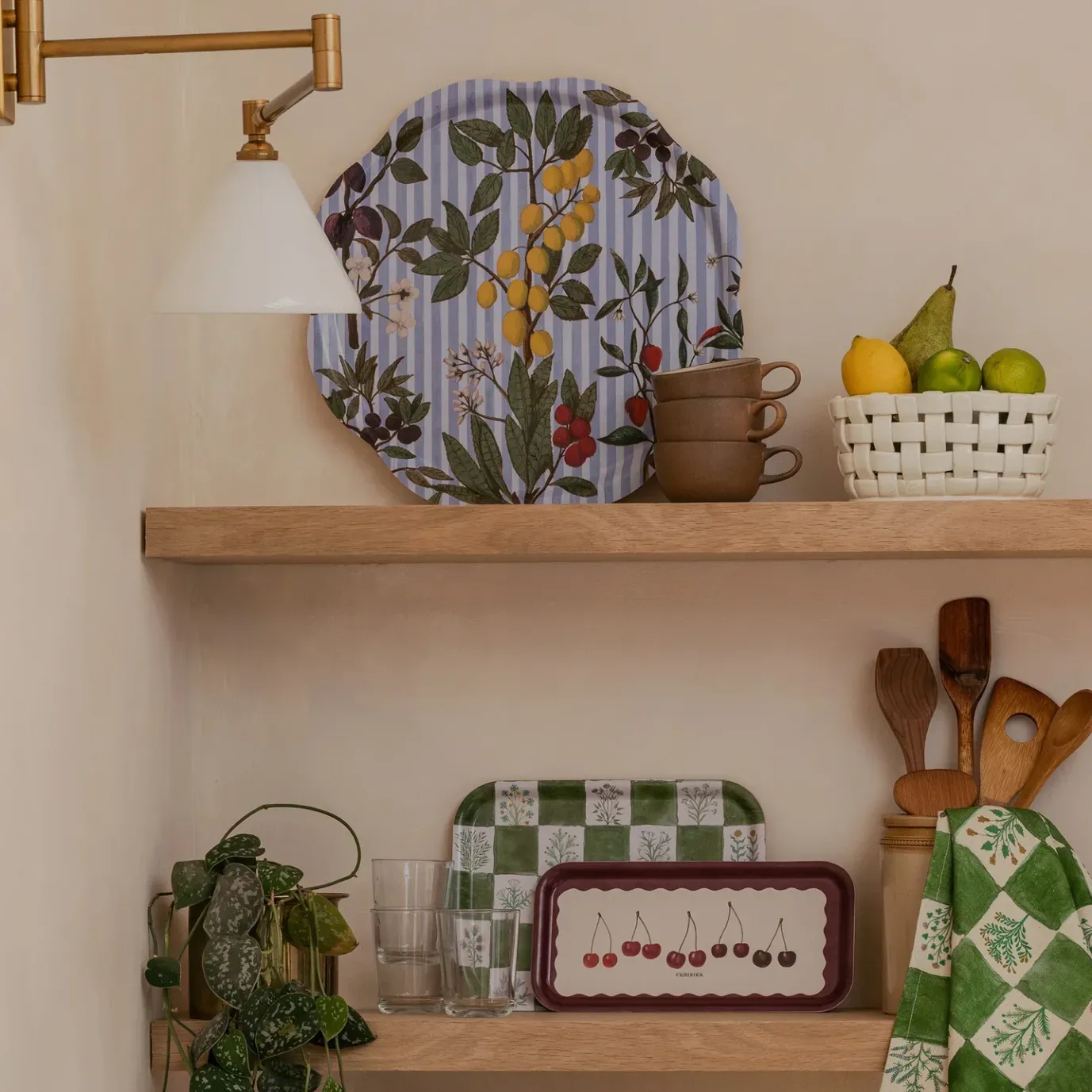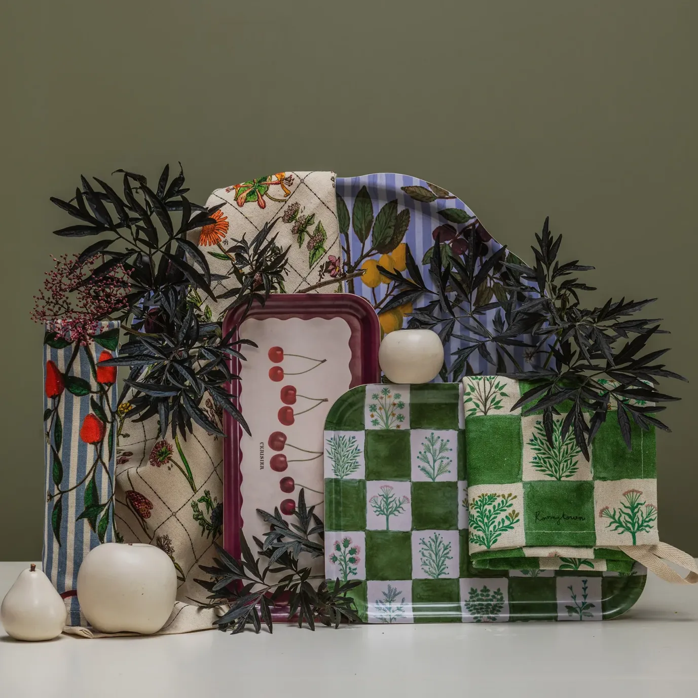 This decorative 15th Century Illustrated Herbs Birchwood Tray is handcrafted in Sweden using birchwood certified by the Forest Stewardship Council (FSC). The design features incredible illustrations of herbs from over 500 years ago! Published in 1462, the original German book combined descriptions of 160 herbs with enchanting illustrations. Roomytown’s designers have handpicked the most captivating illustrations from this ancient gem and paired them with a fresh checkered pattern in watercolor. Serve in style! Food-safe.