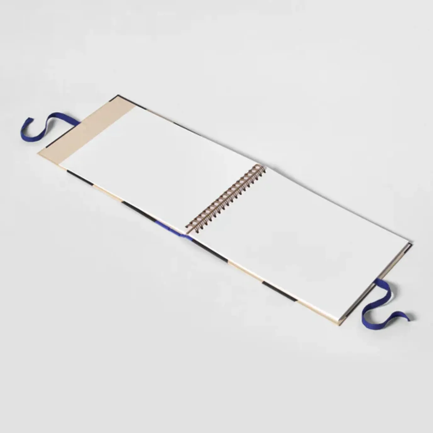 Complete with spiral binding encased in a fabric coated spine, and a ribbon tie closure, it’s an ideal sketchbook for both the seasoned artist or aspiring creator.