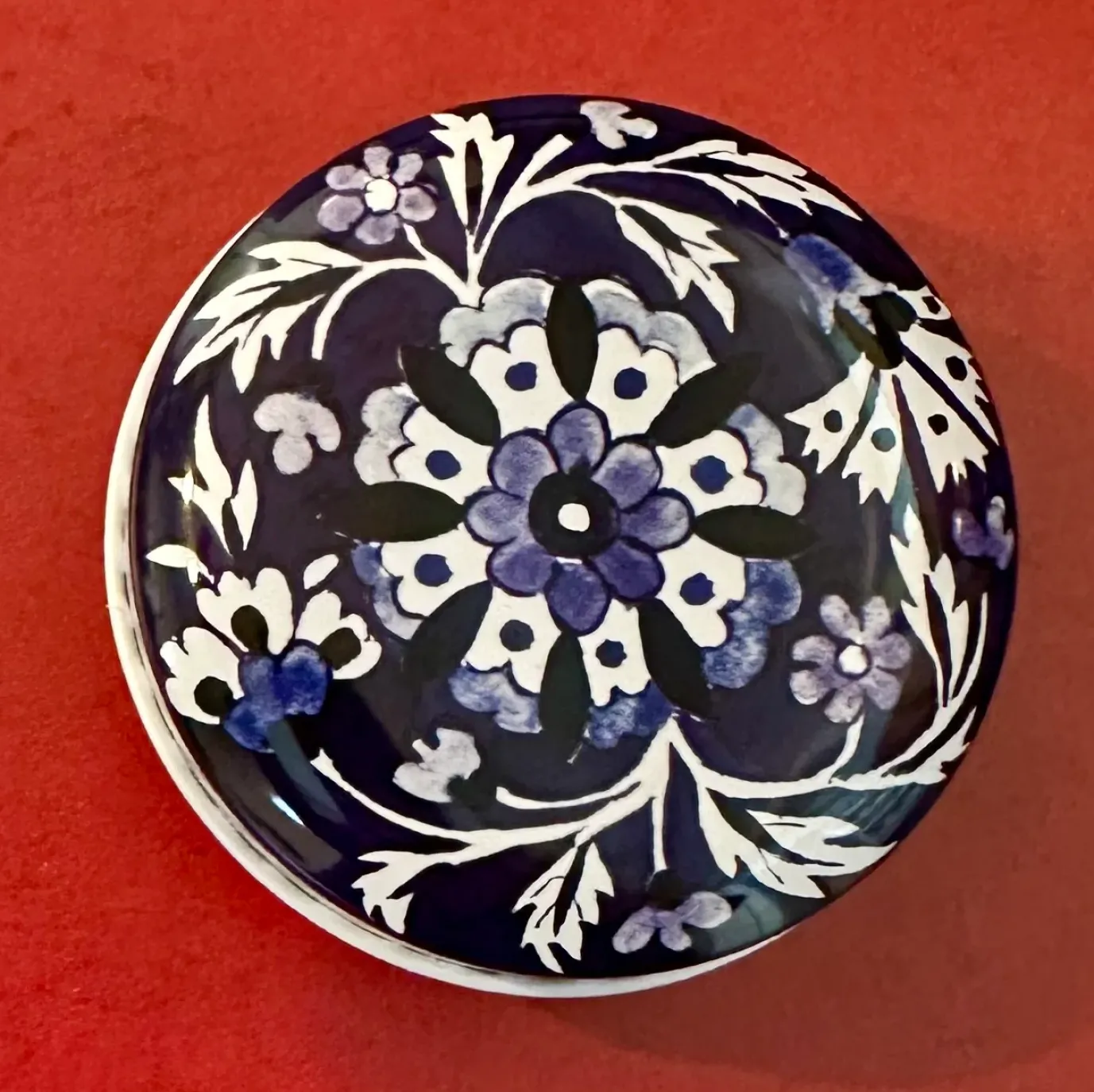 Inspired by Chinese ceramics, this small round tin box will bring a refined touch to your interior in Claire Winteringham’s Blue & White range!