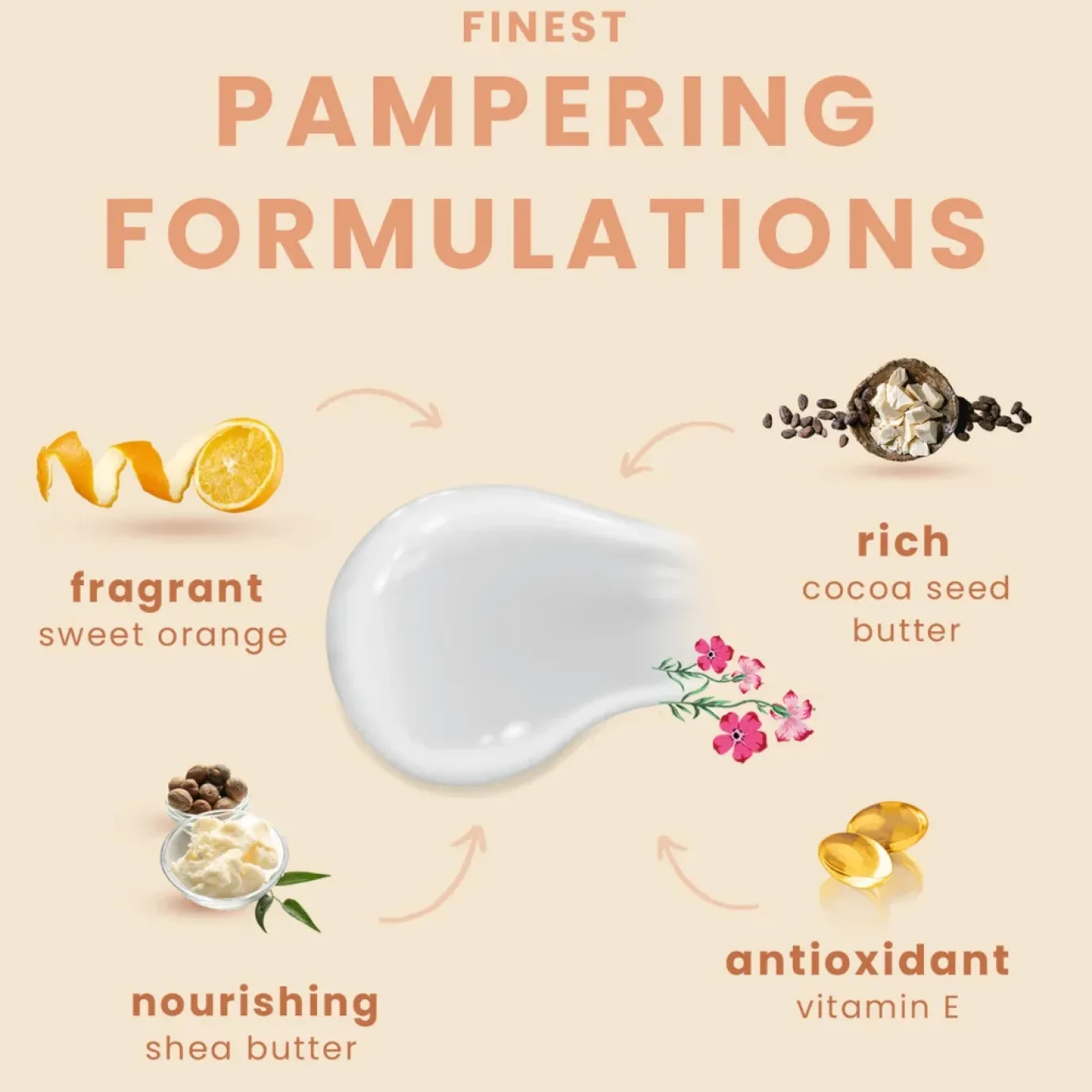 A trio of hand creams packed with emollient shea and cocoa seed butters, bursting with three mouthwatering scents to keep hands feeling soft and deliciously scented, on the go.