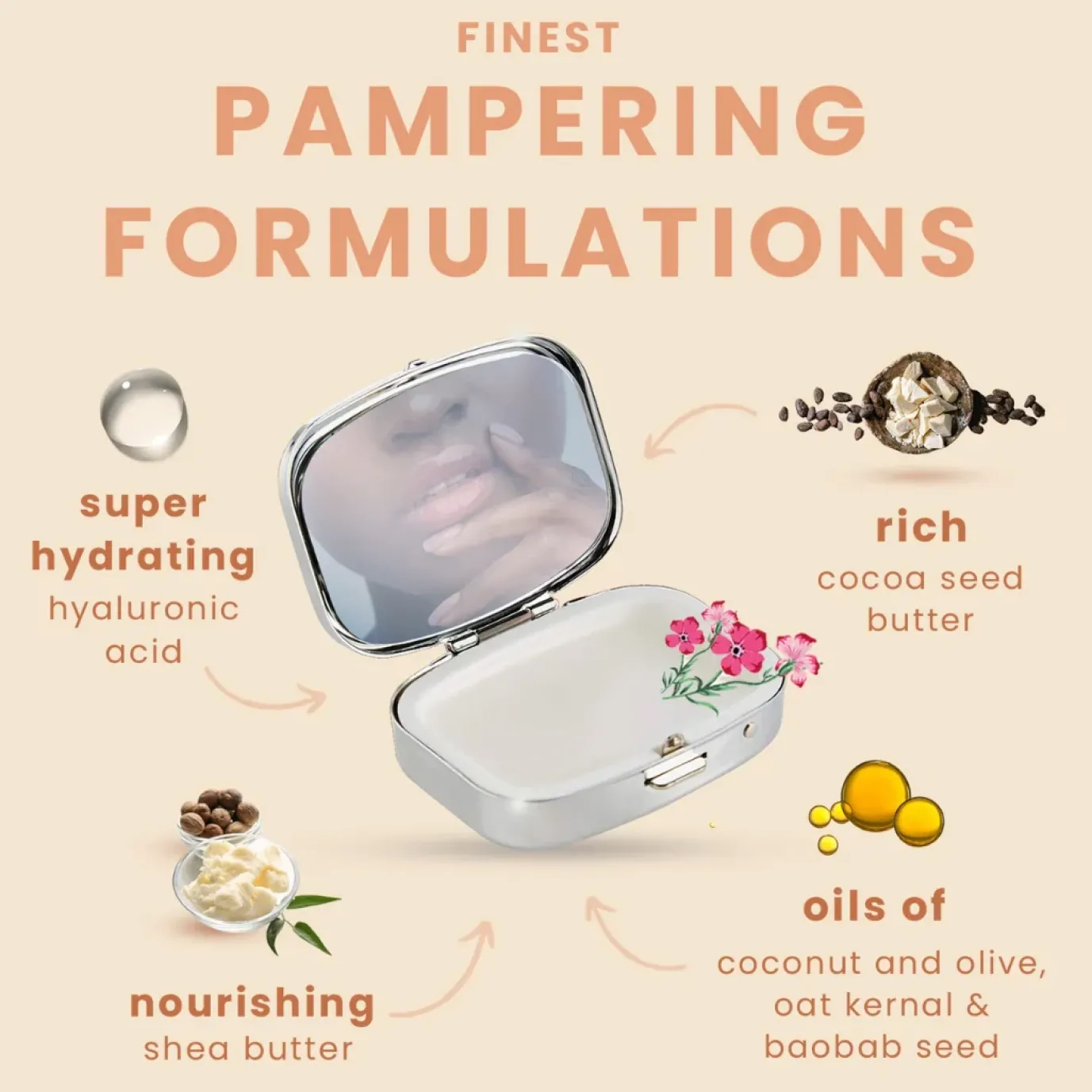 - Collectable compact does double duty with mirror inside; perfect to repurpose for small earrings or vitamins once the balm is finished.