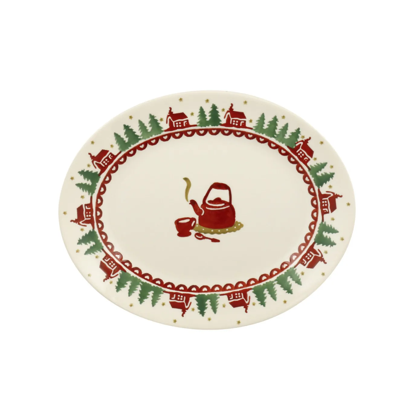 Display the results of a rainy afternoon’s biscuit icing with the children on this Christmas Cabin Small Oval Platter.