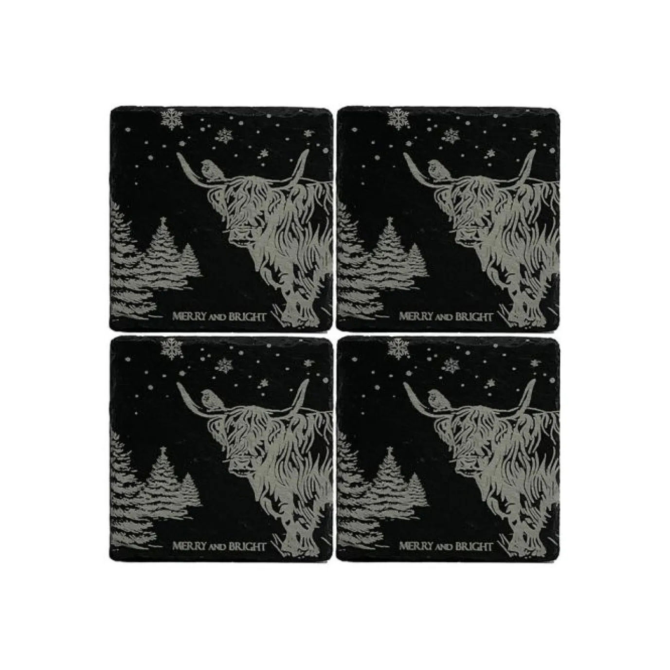 4 Slate Coasters – Christmas Highland Cow from Selbrae House.