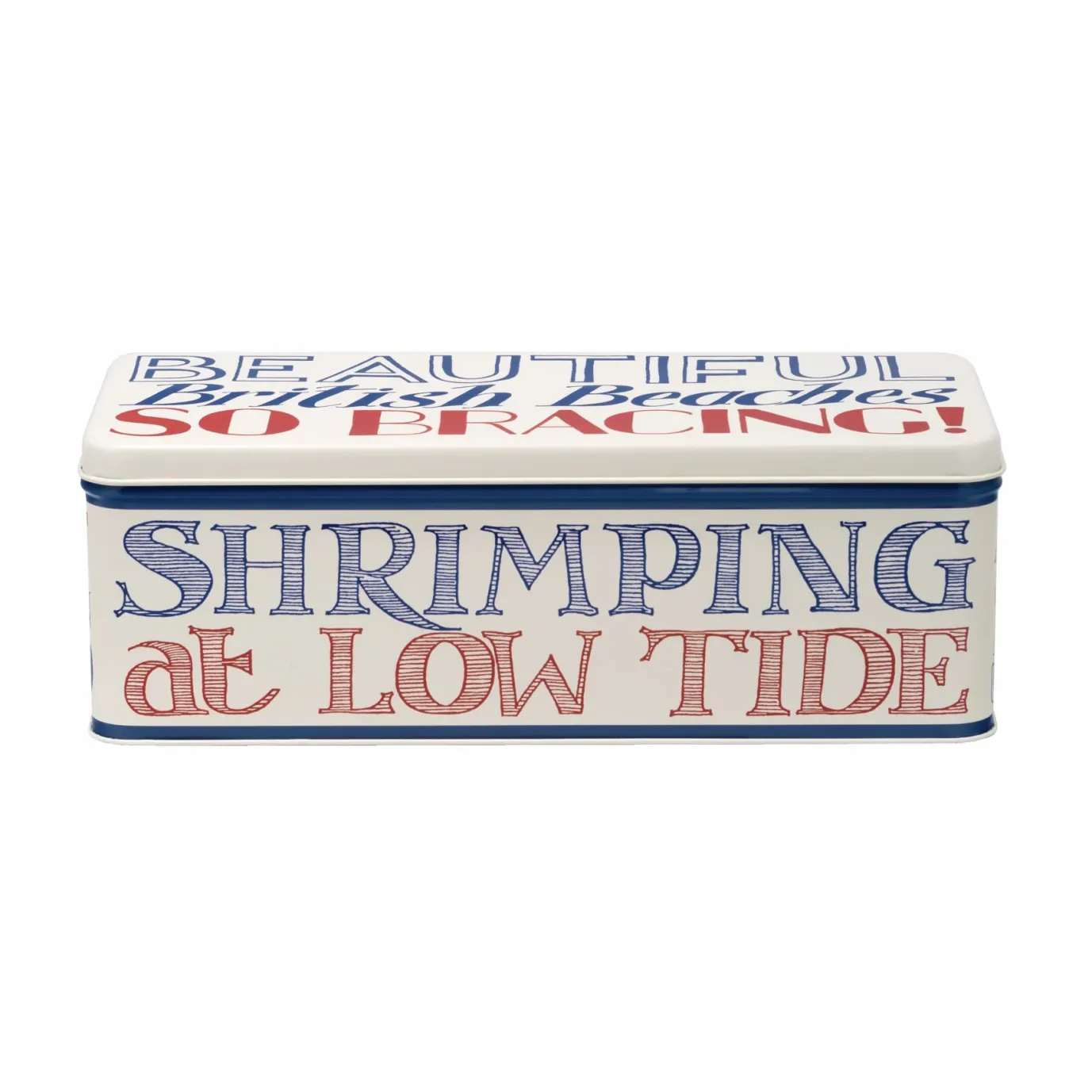 The Emma Bridgewater Coast Toast tin is a fun addition to any kitchen! Featuring a red, white, and blue typographic design, this lidded metal tin is perfect for storing a variety of items. From snacks to small trinkets, it’s a fun and practical choice.