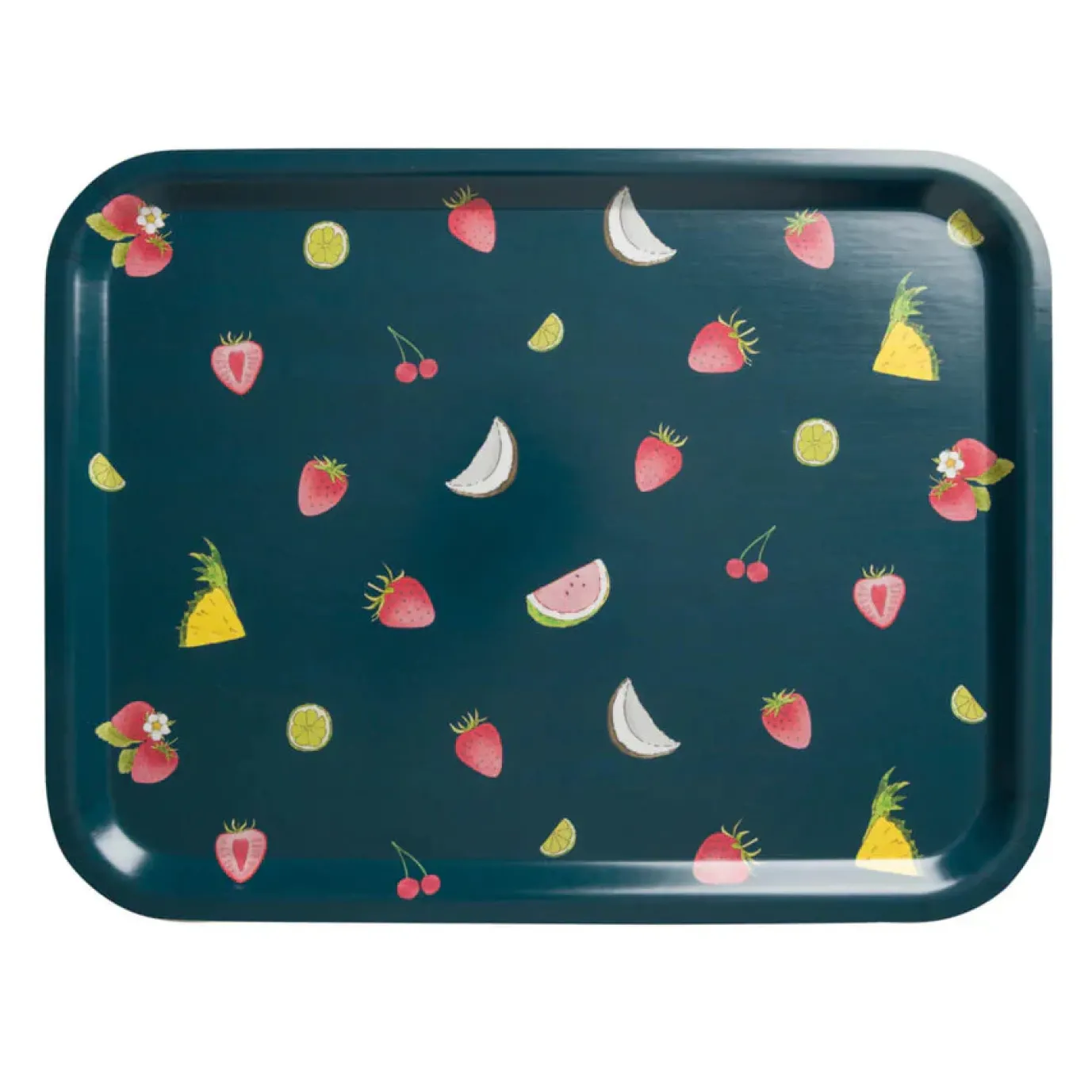 This stylish handmade printed large tray is dotted with delicious fruit on a dark blue background. It pairs perfectly with Sophie’s cocktail collection and her strawberries design for a delightful summer look. Made fromĀ FSC certified Birchwood, ideal for serving drinks, food or displaying in your home.