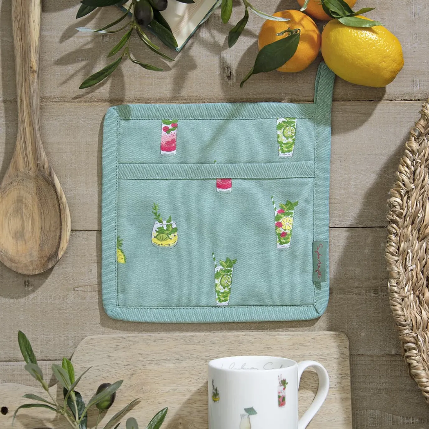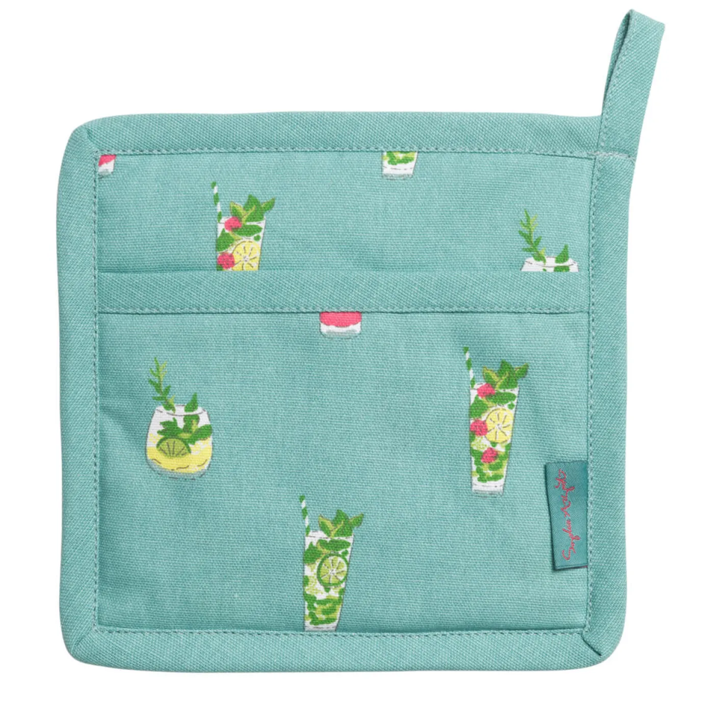 This summery pot grab is sure to add a fresh look to any home! A practical and essential kitchen accessory that is perfect for moving hot pots and pans around the kitchen. Featuring delicious cocktails on an aqua ground colour it’s sure to shake things up! Made from 100% cotton and has internal padding for excellent insulation.Â