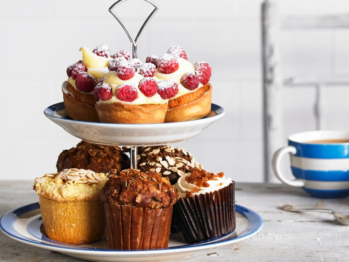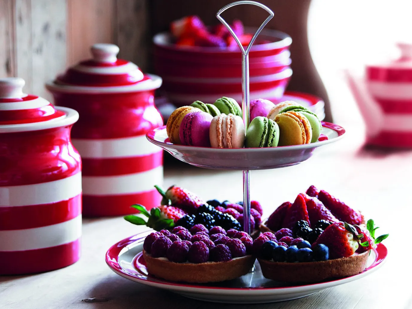 Enjoy a stylish afternoon tea on your favorite Cornishware plates as a cake stand.