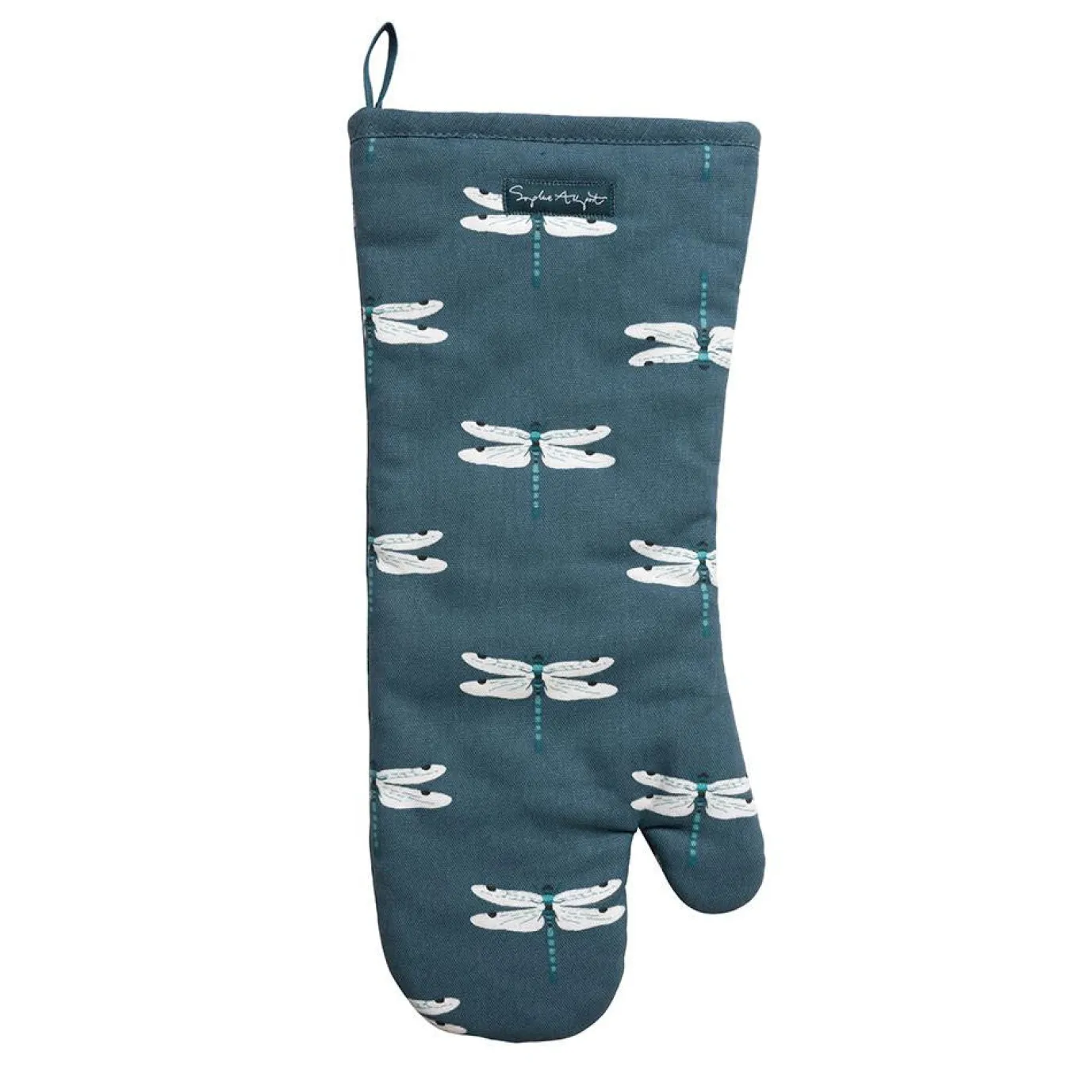 Beautiful dragonflies whizz around this midnight blue oven gauntlet – a spring and summertime design for your kitchen..