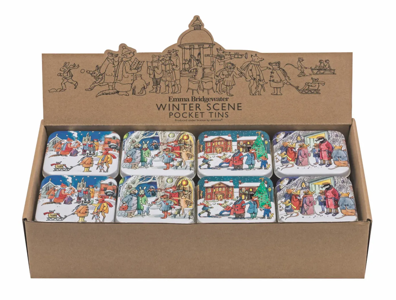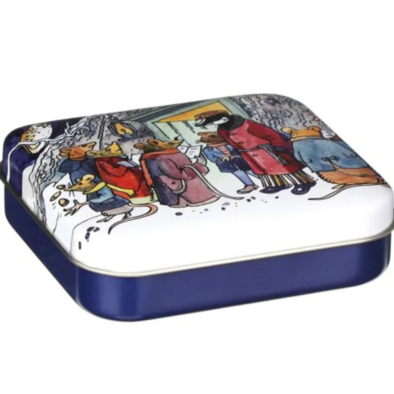 Made from metal the tins feature lovely wintery scenes. Each tins has an airtight lid which is easy to open and close as it has hinges on one side, also meaning you can’t misplace the lid!