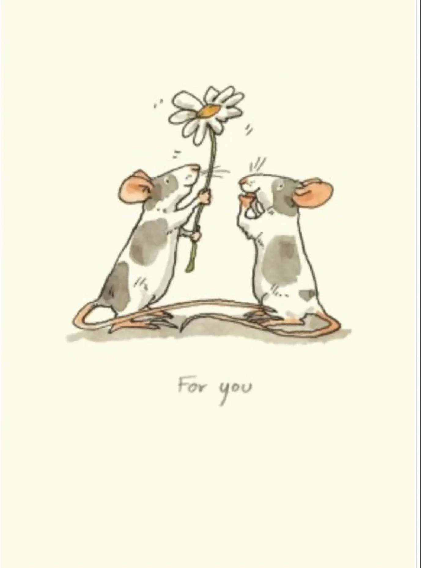 This adorable Greetings Card by artist Anita Jeram features one cute mouse gifting another mouse a daisy. The card is blank on the inside for your own message and measures 6in x 4 in.