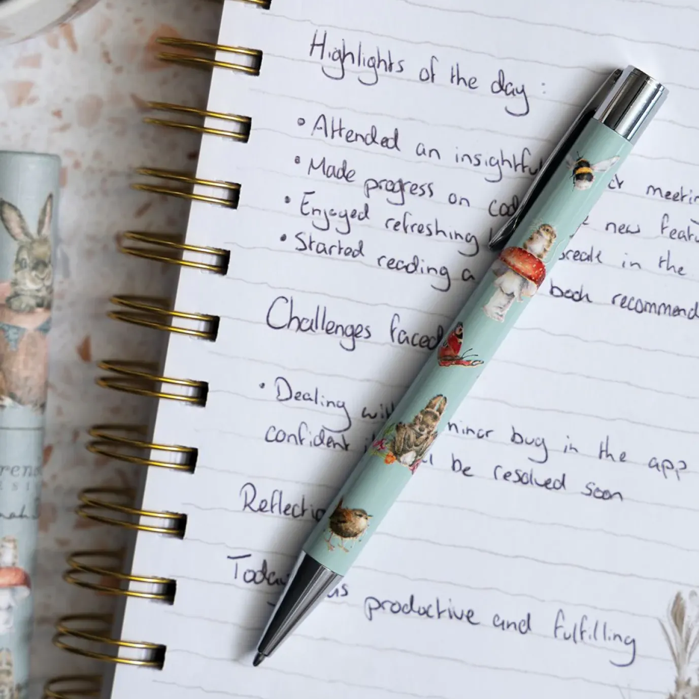 Add an extra flourish to your writing with this gorgeous pen from Wrendale Designs featuring a lovely rabbit and mouse pattern on a light green colored background. Wonderful quality and with a lovely feel, the pen is heavy in your hand and writes beautifully in black ink. The pen comes presented in a gift box tube in the same design making a lovely gift.Â