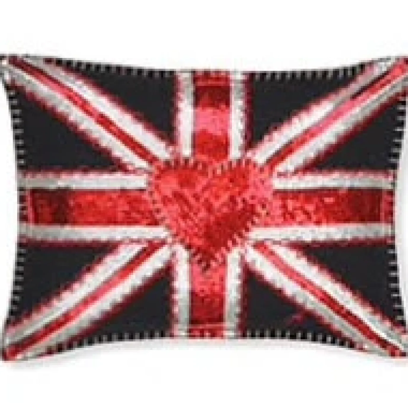 The Jan Constantine Sequin Union Jack Cushion is a glamorous take on our famous small Union Jack crunch cushion with ubiquitous JC central heart. Lots of rows of red and oyster sequins are stitched in the strips to form the flag and the heart in the centre is encrusted with red sequins. Finished with blanket stitch edges.