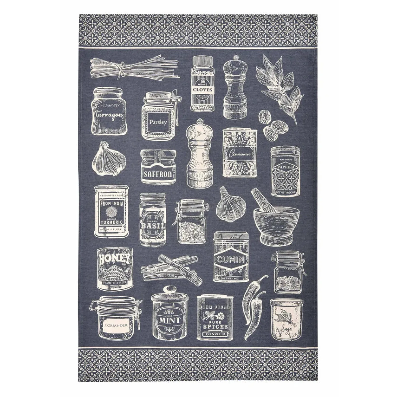 Inspired by vintage food packaging and recipe books, this cookshop range features hand-drawn designs created with fine liners. With universal appeal, the single-color print on unbleached cloth gives the collection a rustic, timeless cookshop look, perfect for adding a nostalgic touch to the kitchen.