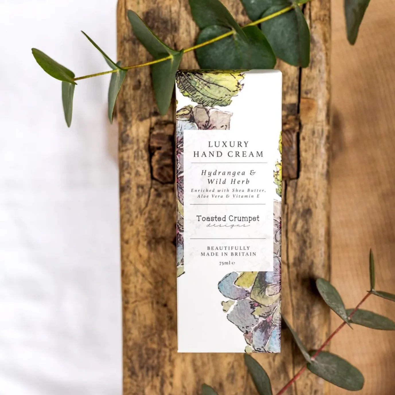 Fragrance and design notes: This luxury moisturising hand cream has an aromatic calming scent of lavender and rosemary, with a fresh touch of mint. A blend of dried lavender flowers and vanilla create the base together with cedar and musk. The recyclable packaging is printed with beautiful illustrations from the popular hydrangea collection to give the product its unique design.