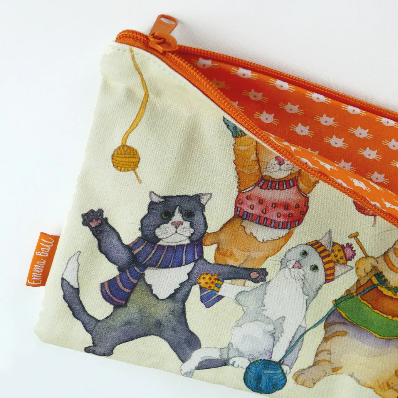 A long zipped bag with a small loop to hang up, matching lining. Designed for medium sized projects and handy for longer needles!