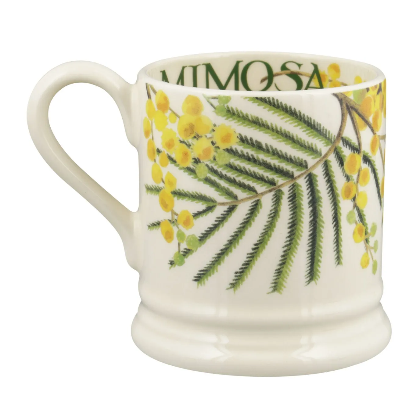 Imagine the sweet fragrance of the mimosa tree when enjoying your tea in this Emma Bridgewater 1/2 Pint Mug.