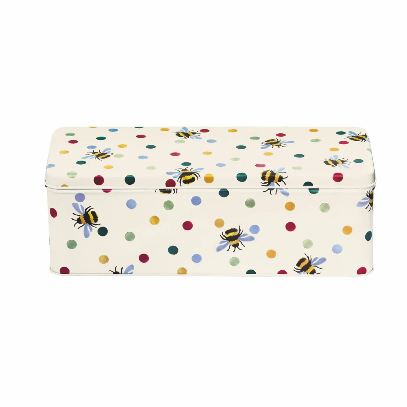 Keep cheese biscuits and crackers crisp by storing them in our Polka Bee long deep rectangular Cracker TinĀ from Emma Bridgewater.