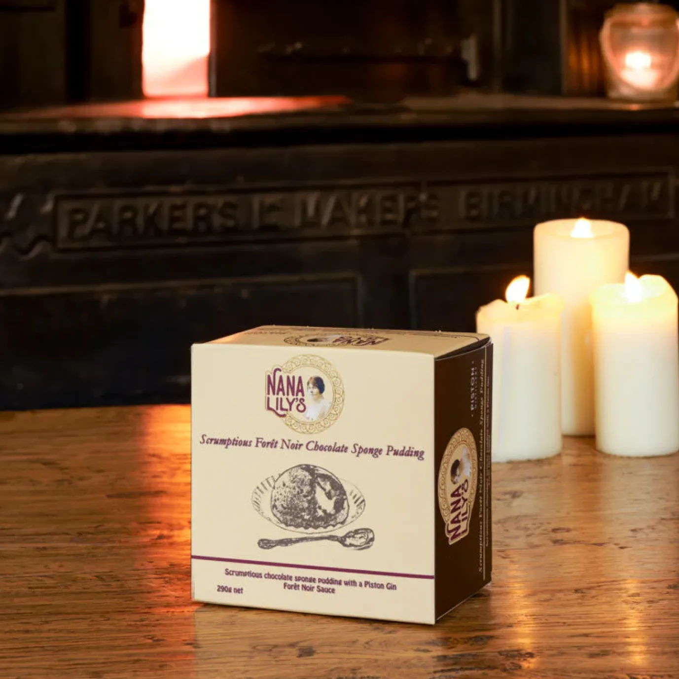 Scrumptious moist chocolate sponge pudding with the flavorsome Piston Forêt Noir gin in the chocolate sauce. Treat the family with this delicious pudding from Nana Lily’s. Made in England.