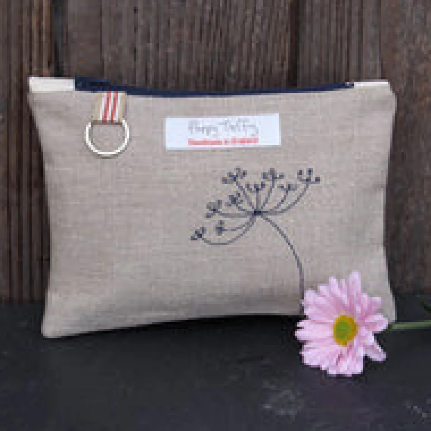 With more room for coins and other little bits and bobs than our small useful purses, this seed head handmade flat purses is a super gift and so easy to pop into the post. With the beautiful seed head freehand machine embroidery each product becomes it’s own original work of art.