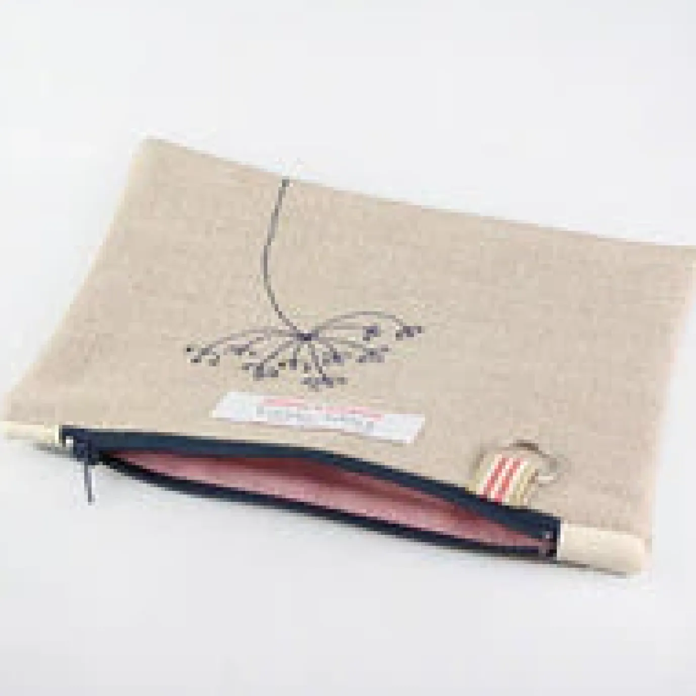 Material: Outer made from natural linen with embroidered detail. Contrast pale pink cotton canvas lining.