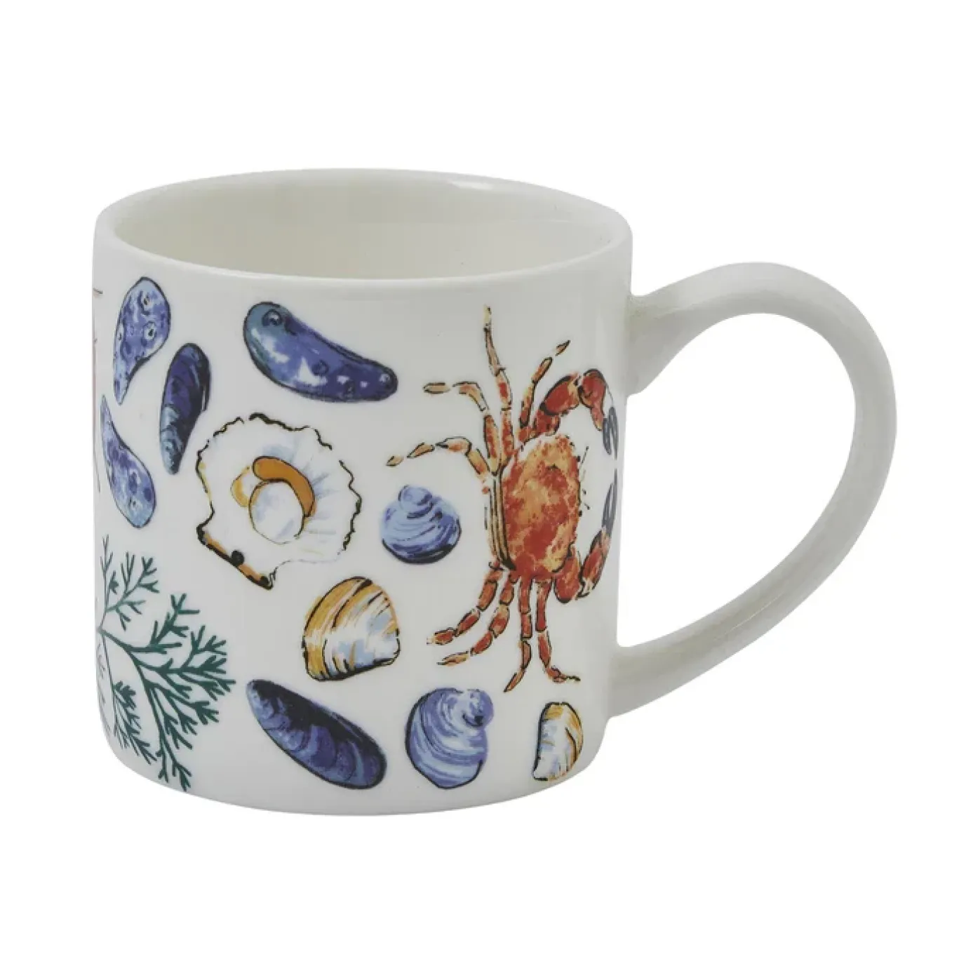 Glistening lobsters and crabs, shimmering mussels and clams hide amongst swirls of seaweed in this watercolour painted design. The artwork has been created as a contemporary mirror image, a kaleidoscope of pattern for modern kitchens and seafood lovers. While the imposing claws of the lobsters and crabs are the focal point of this design, the seaweed tendril reverse pattern with its little hidden clams adds delicacy. The aquatic teal green trims makes the vibrant orange shellfish and iridescent blue mussels really pop with colour.