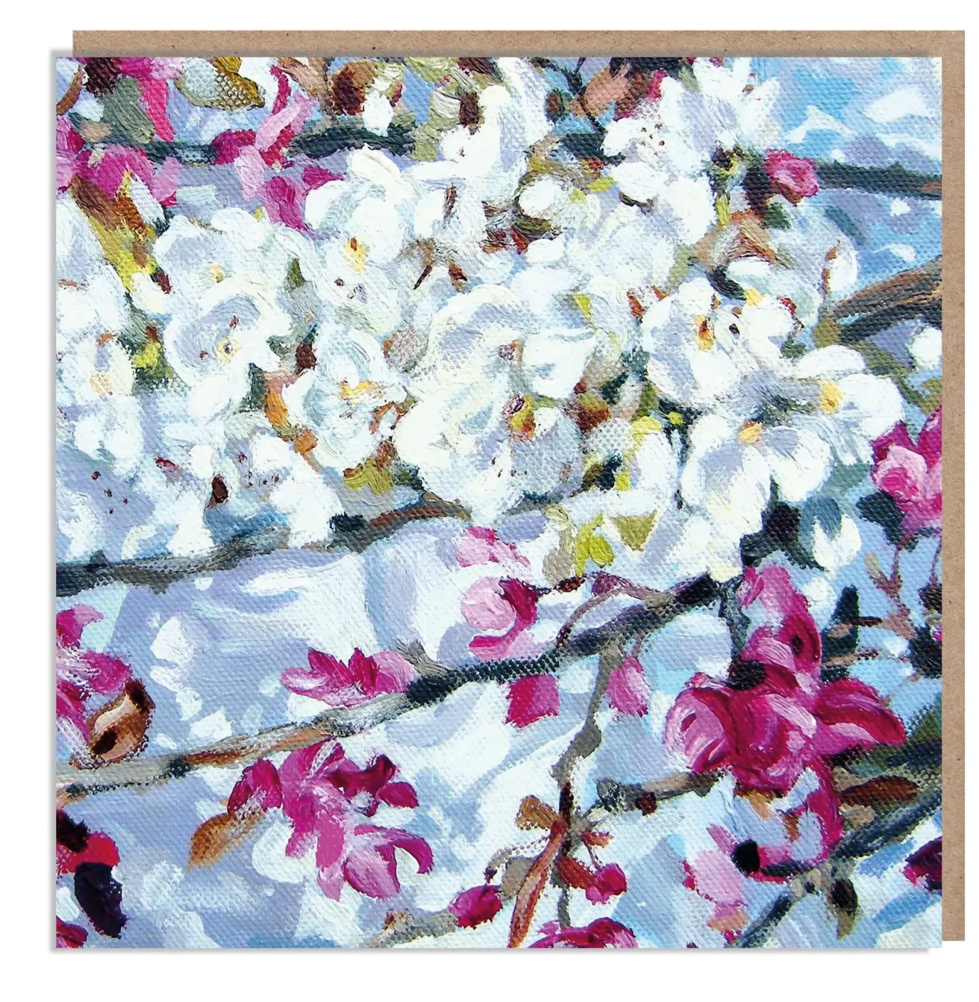 ‘The Flower Gallery’ range of quality art cards captures the simple beauty of seasonal flowers with bold colour and confident brush marks. This design, ‘Spring Blossoms’, is taken from an original paining by Dan O’Brien. The cards are printed in the UK on sustainable board supplied with a quality brown envelope.
