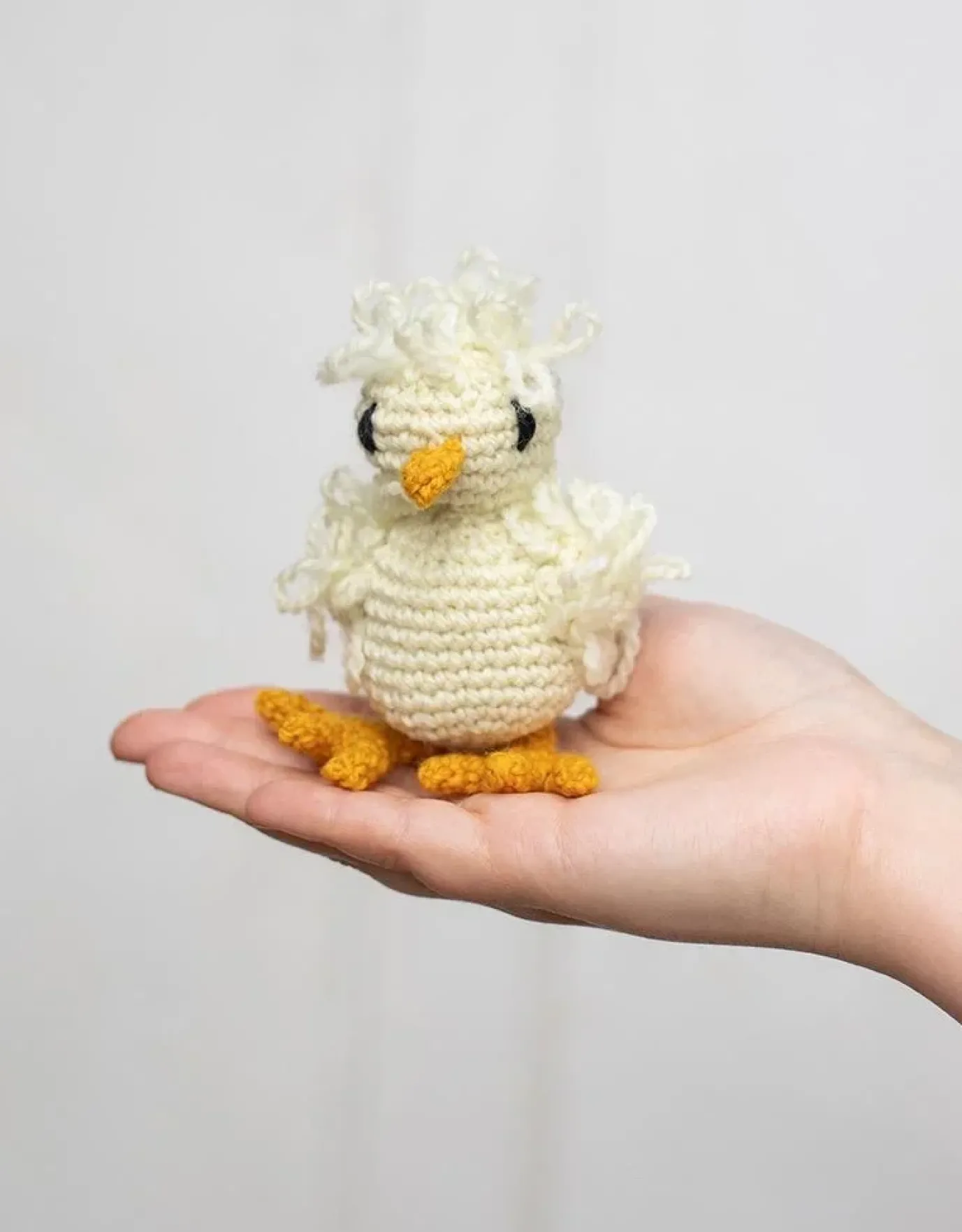 YOU WILL NEED: To complete your Mini Spring Chicks you will need a few added extras including a 3mm crochet hook, toy stuffing, Black yarn for facial features and a wool needle. Find everything you need in our haberdashery section or upgrade to a complete kit which includes all of the above!