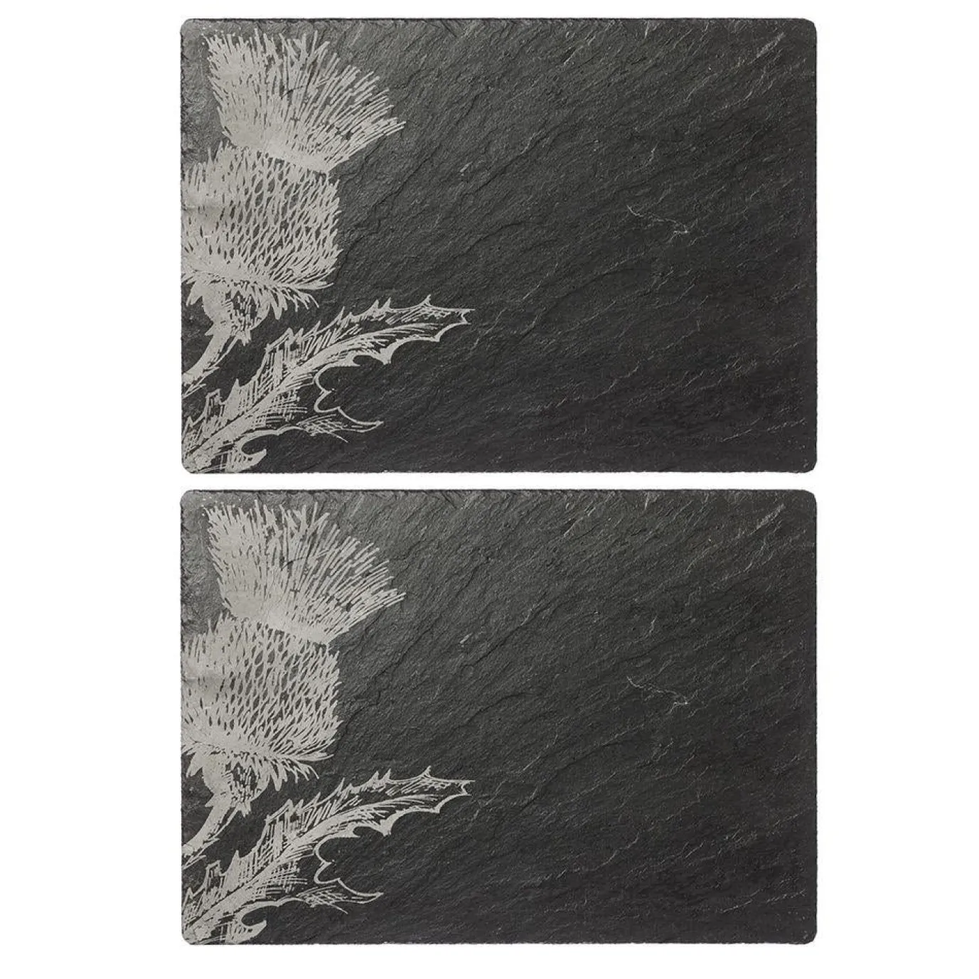 Our set of two rectangular slate place mats have been given a makeover – engraved with a stunning hand-illustrated drawing of a Scottish thistle – these will provide a lovely and unique table setting to serve your dishes onto.