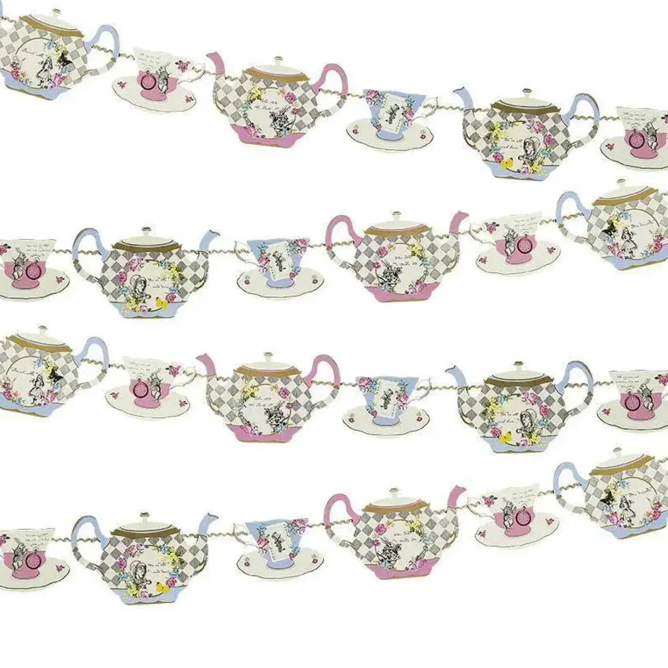 Wonderfully whimsical teapot bunting perfect for all mad hatters at afternoon tea parties and birthdays. Drape your teapot bunting in doors or in the garden to add a whimscal touch to your celebrations.