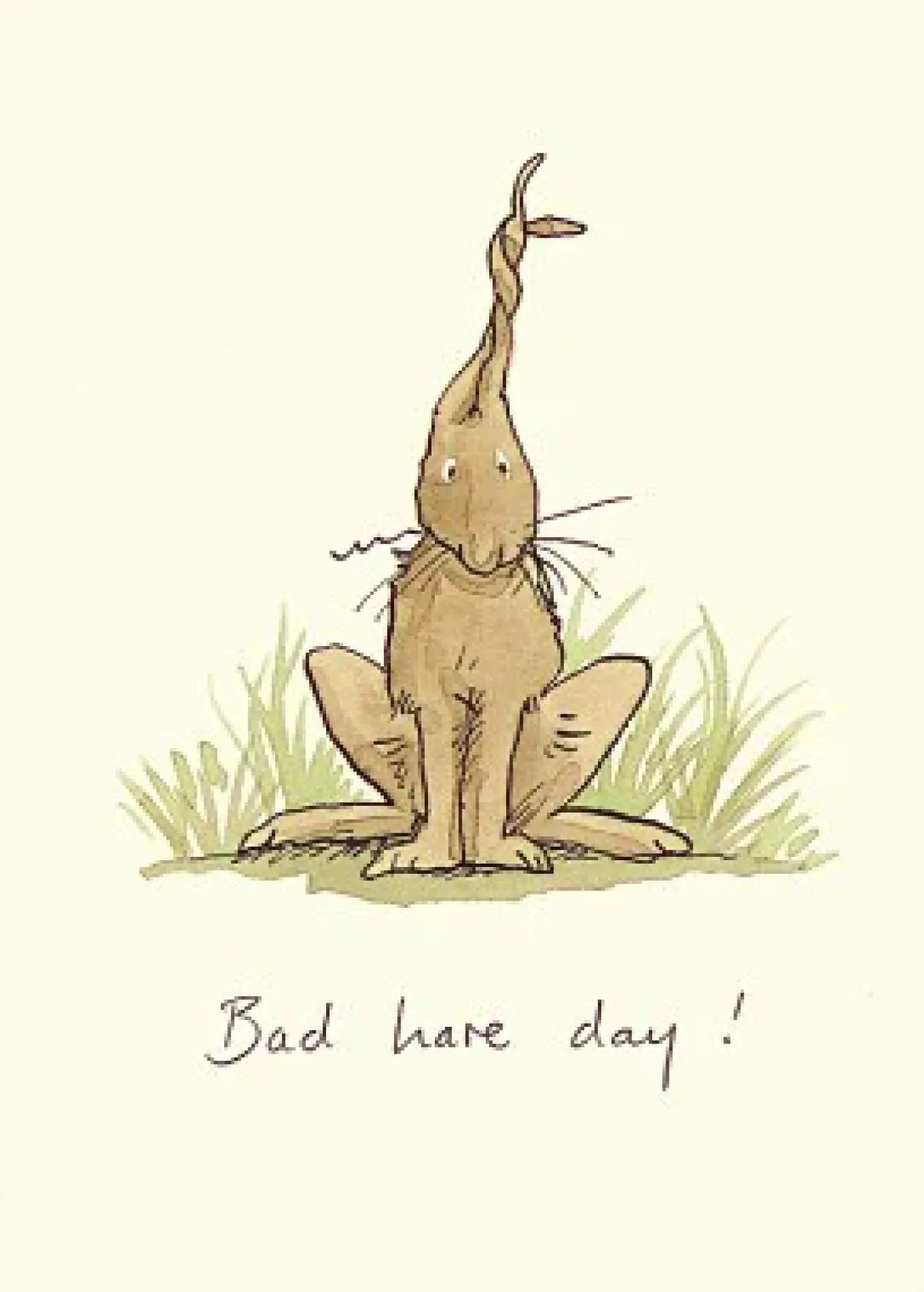 The amusing illustrations on this card show this hare struggling with something we all occasionally suffer from – a Bad Hare Day! The card is blank on the inside for your own message and measures 6in x 4 in.