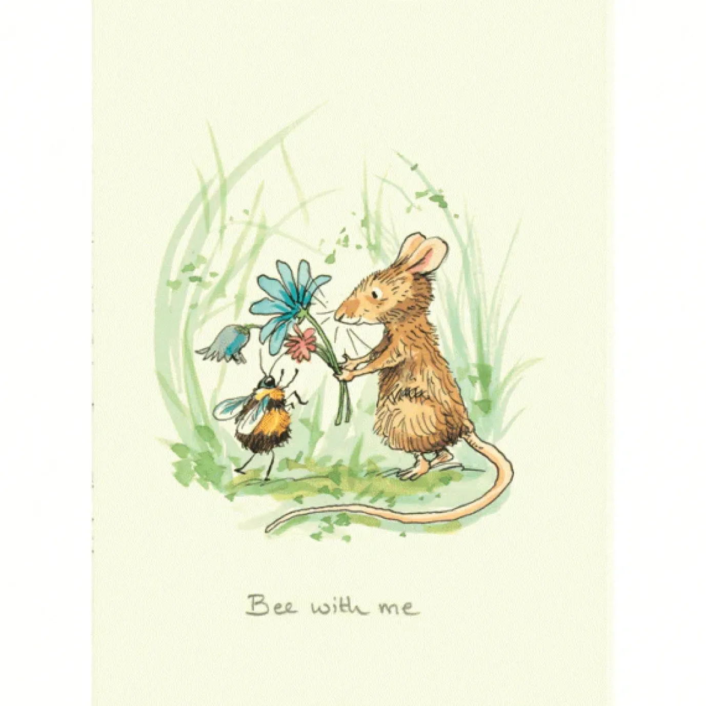 This adorable Greetings Card by artist Anita Jeram features a mouse presenting a bouquet to a bumblebee. The card is blank on the inside for your own message and measures 6in x 4 in.