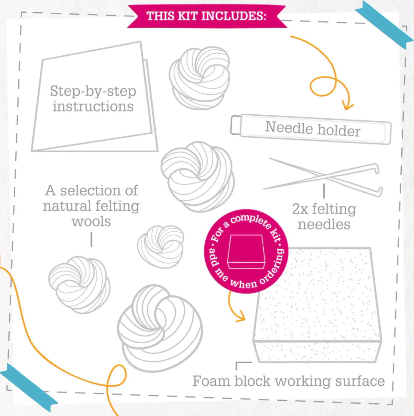 - 2x felting needles in a secure case