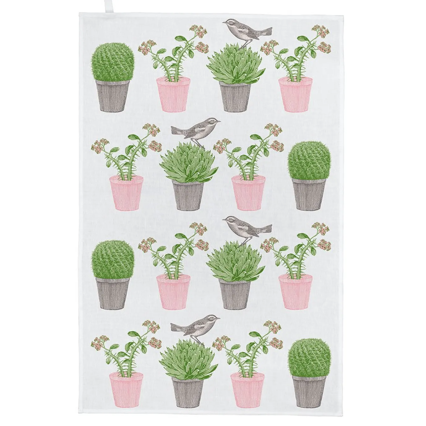 100% White cotton tea towel, screen-printed with a fabulous three colour Cactus & Bird design. The perfect kitchen addition for house-plant lovers.
