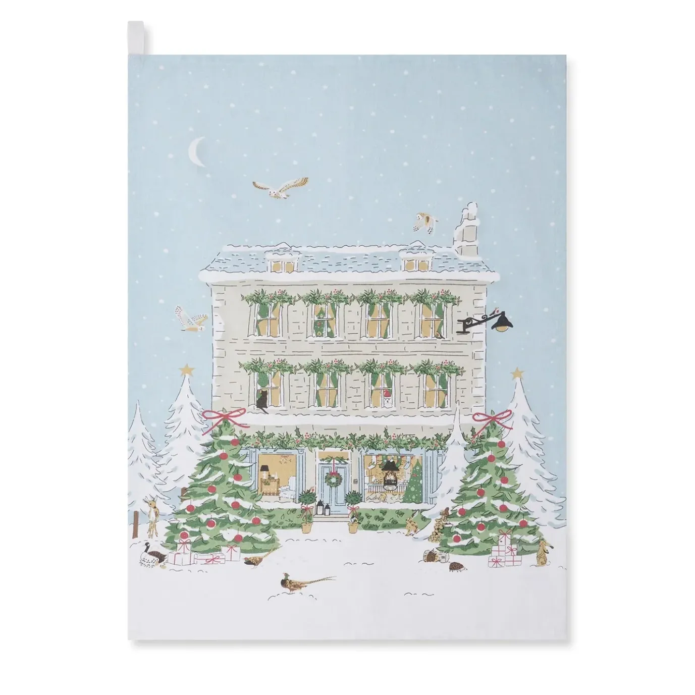 The sweet design lends festive charm, showcasing the peaceful period of snow falling on a Christmas night and the animals coming out to play, spot Father Christmas in the window! This lovely festive tea towel, illustrated by Sophie, makes a great addition to any kitchen and is sure to add a playful seasonal touch. Made from 100% cotton, it’ll make drying up after Christmas lunch that little more enjoyable.Â