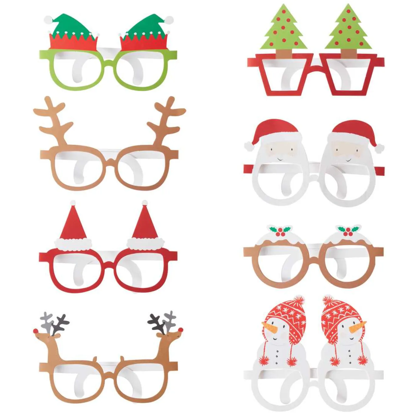 Add fun to your table with these Festive Christmas Novelty Funglasses. Pack contains 8 pairs of christmas fun-glasses.