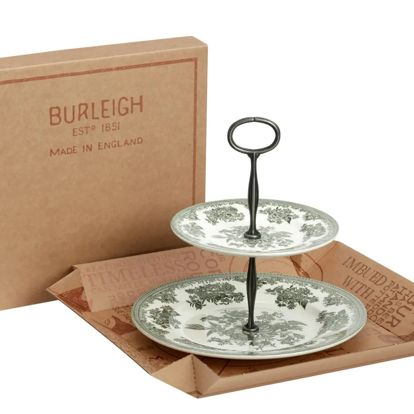 Present your home-baked treats in style with this elegant two tier cake stand from Burleigh’s Dark Green Asiatic Pheasants range. This intricate dark green flowers of this quintessential design bring elegance and refinement to the table. Perfect for special occasions and holidays such as Christmas or for everyday use.