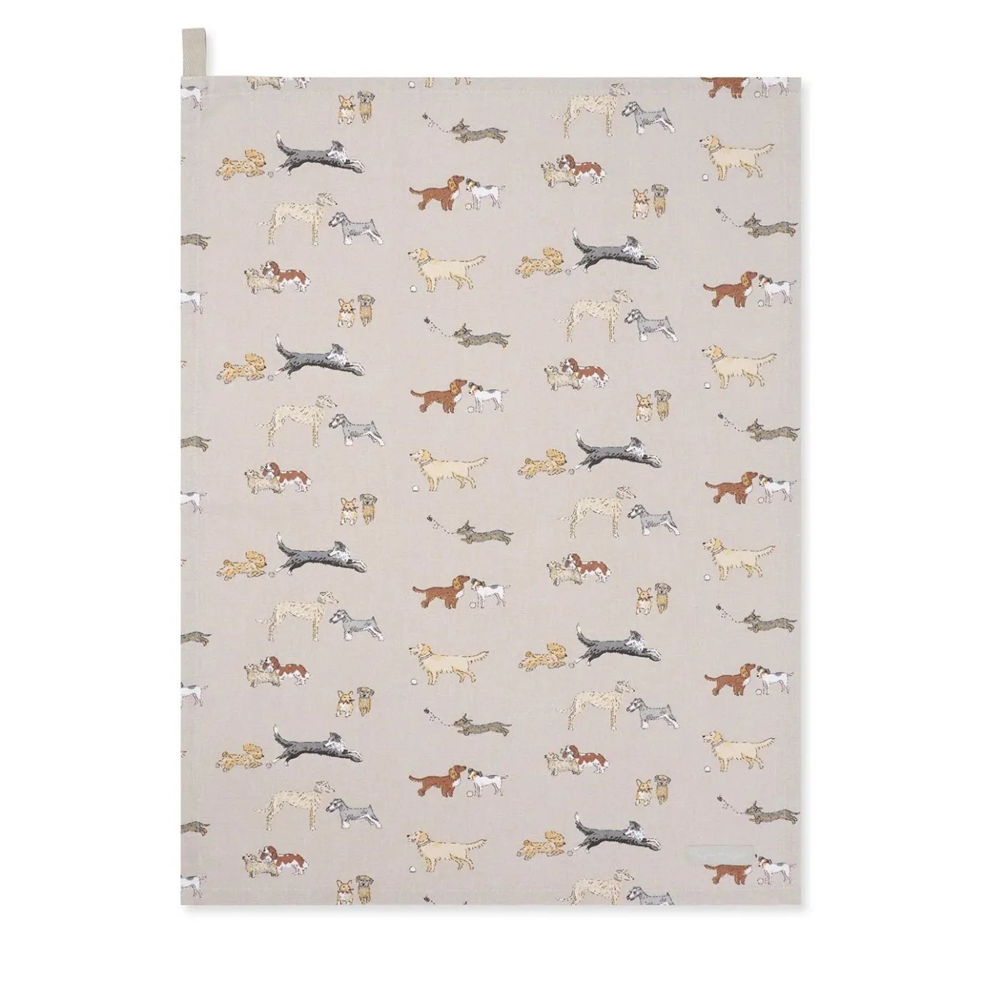 Add a playful touch to your kitchen or utility room with this 100% cotton tea towel, featuring Sophie’s illustrations of a few of our favorite doggies. Spot charming breeds including border collies, cockapoos, corgis, border terriers, spaniels, king Charles spaniels, schnauzers, golden retrievers, lurchers, wire-haired dachshunds, jack russells and Norfolk terriers. The natural stone colorway pairs well with many kitchen interiors. Style with the matching kitchen linens for a coordinated look.Â