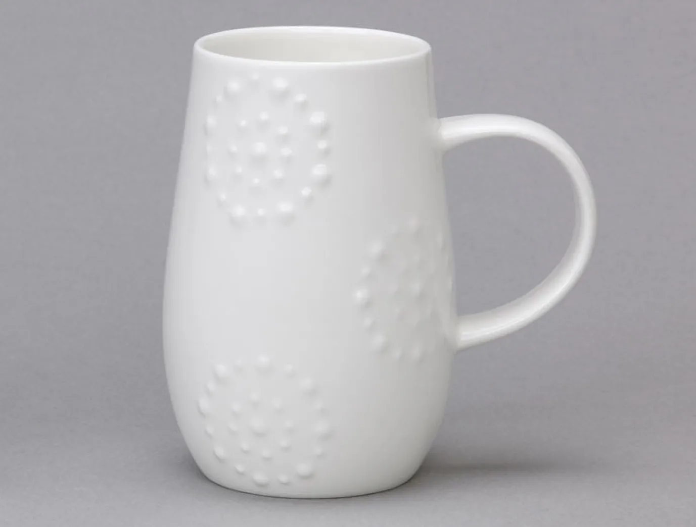 The Droplet Kaleidoscope is part of Repeat Repeat’s popular white bone china range with raised 3D patterns. It’s tall, elegant and lovely to hold, and features a simple Kaleidoscope motif. They hold well over half a pint. Perfect for those who prefer a bigger drink.