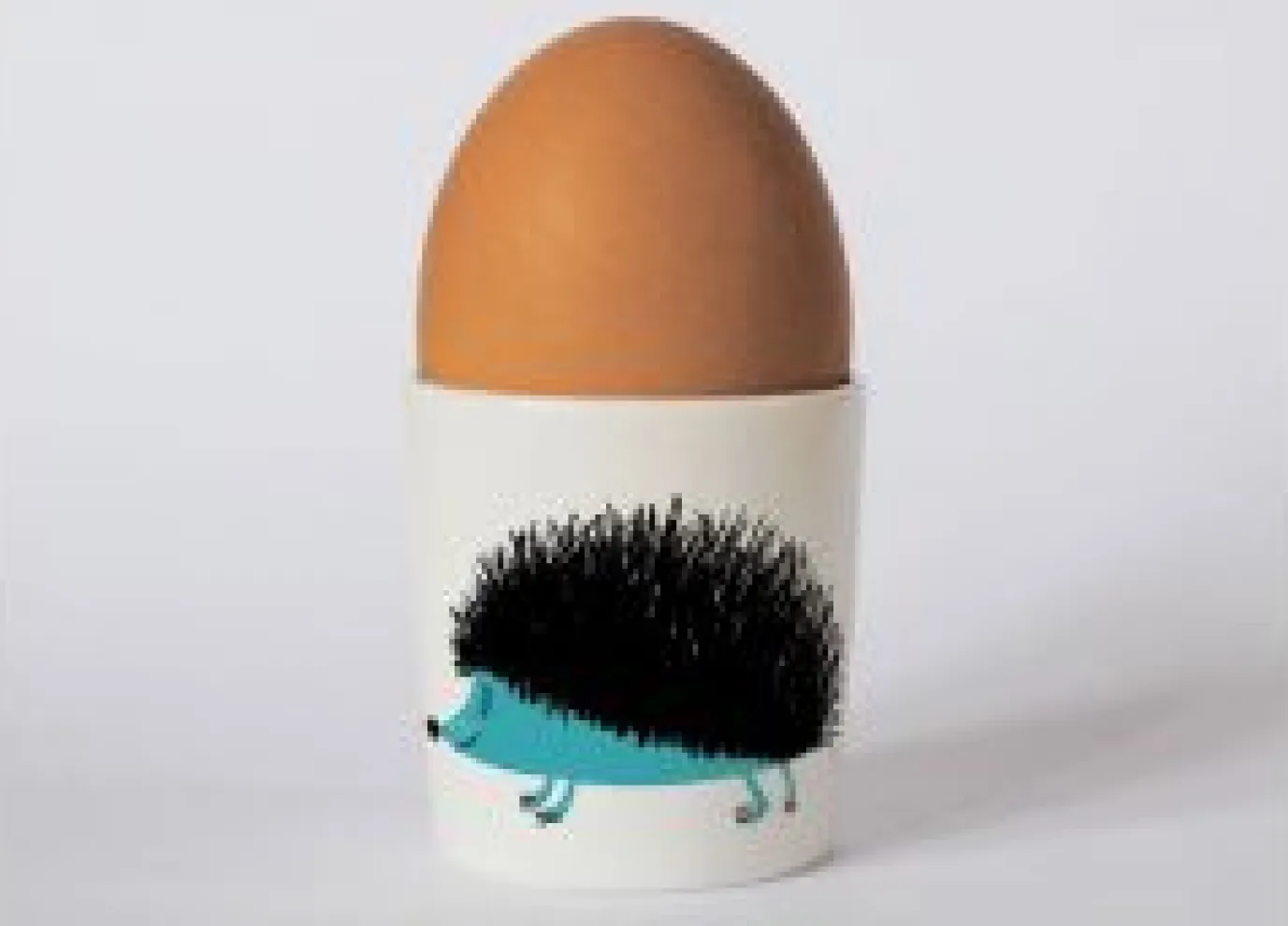 A beautiful hedgehog egg cup with a positive message on the back. The perfect bone china egg cup for lovers of mid-century style graphics with muted colours typical of that era.