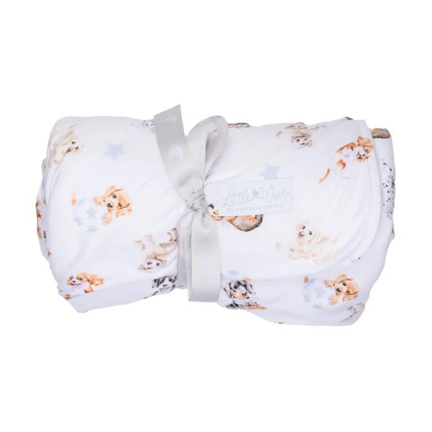 This beautifully soft Little Paws baby blanket is perfect for a new arrival or expecting parents and features lots of baby animal illustrations. Each blanket features an all over pattern on a white background with a soft touch reverse. Beautifully packaged plastic free in a branded grosgrain ribbon and feature a branded woven label. 100% cotton, reverse 100% soft touch polyester. Machine washable. Unfolded measures 35 x 27 inches.