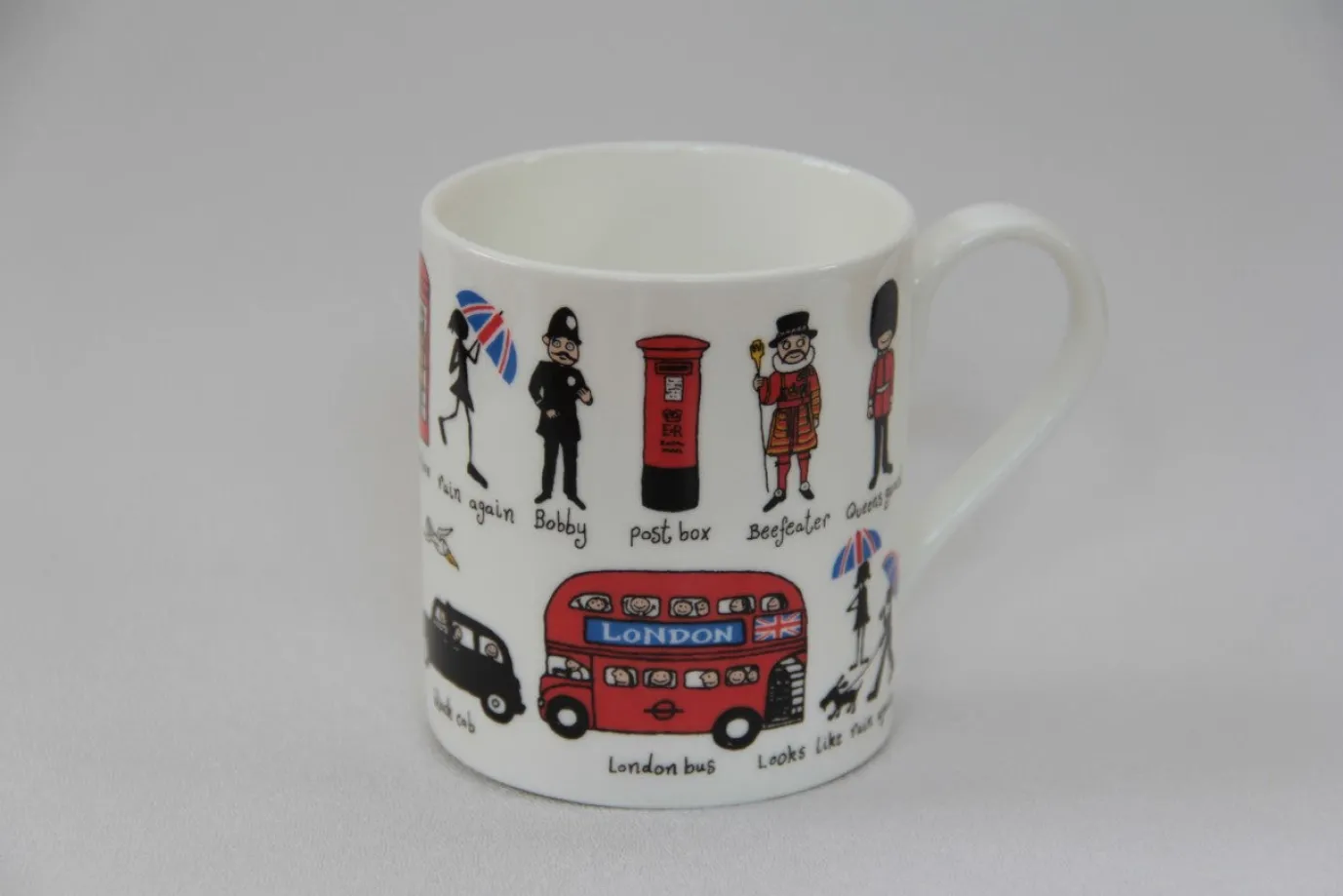 China mug with all your favorite London motifs. 8.5 fl oz