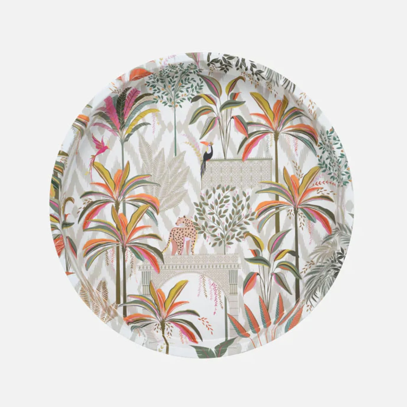 Ideal for serving up coffees and nibbles, or as a stunning decorative accent alike, this Palm Garden Round Tin Tray from Sara Miller London will bring elegance to any occasion. Featuring abundant foliage, lush palms and characterful toucans, this stunning tin tray will add an element of style and practicality to your decor.