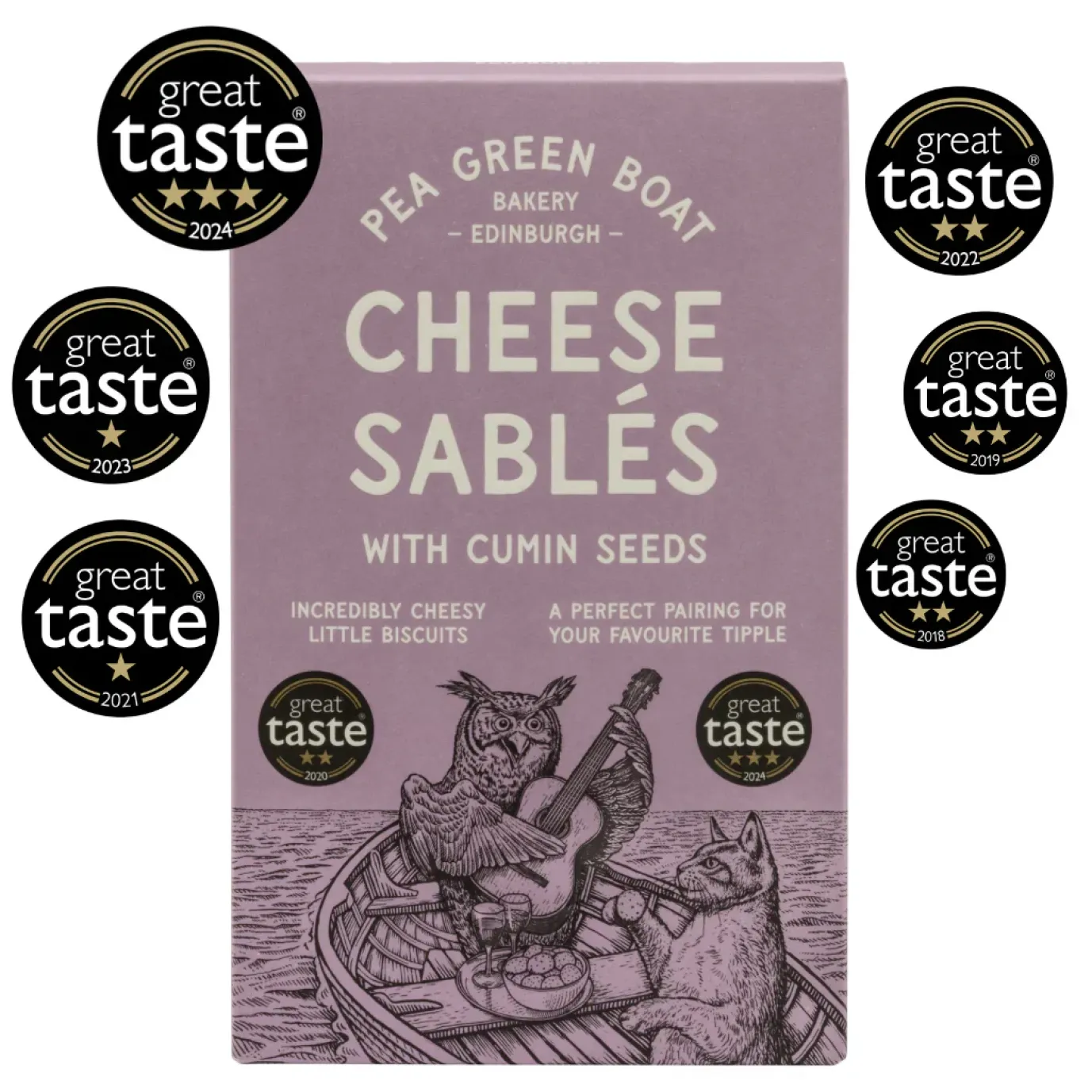 The Pea Green Boat Cheese Sablés are lovingly made using Italian parmesan, mature cheddar, butter and local organic flour, alongside the shortbread in the bakery.