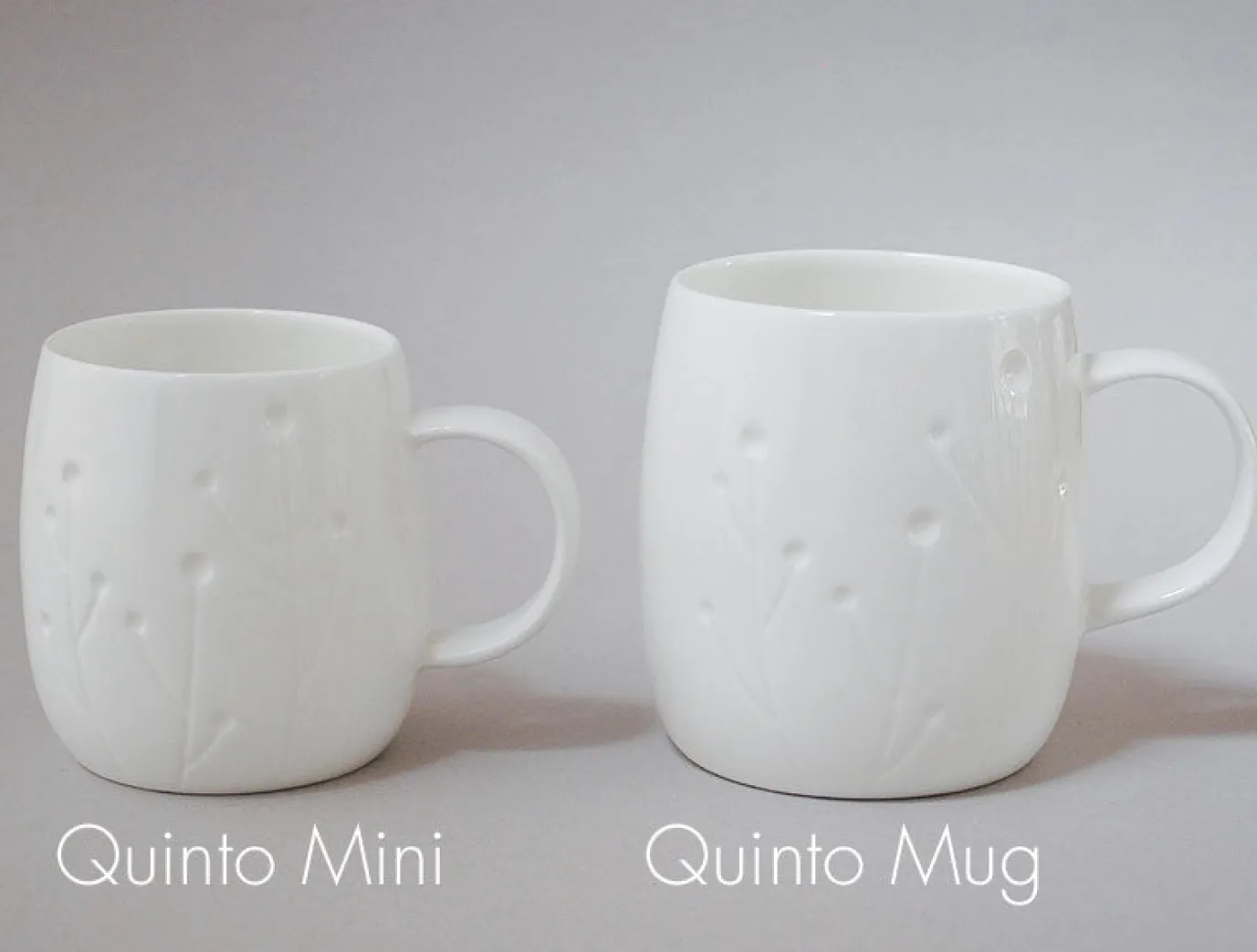 Quinto Mini Cotton is a scaled down version of our popular Quinto mug. It’s smaller than a traditional sized mug, and larger than an espresso cup. Great for coffee machines. We’ve included a picture which shows a comparison of the two Quinto mug sizes.
