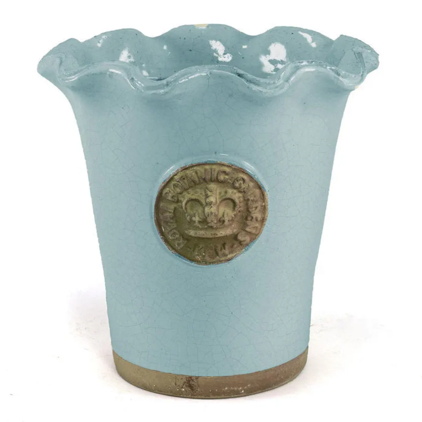 The scalloped top edge of this piece has made it a must have. Authentic English Inspired pottery with the official seal of the Royal Botanical Gardens, Kew. This Pie Crust Cachepot is entirely handcrafted by Artisans, these beautiful pots are suitable for indoor use or outdoor use although we advise bringing them indoors during particularly frosty periods as they can crack. With each purchase of these beautiful pieces, funds are contributed to the gardens and its important, on-going work. Each item is individually crafted and therefore no two items are identical and minor imperfections are inherent and add to the beauty of these products.