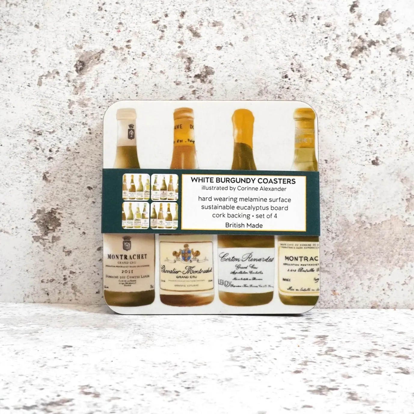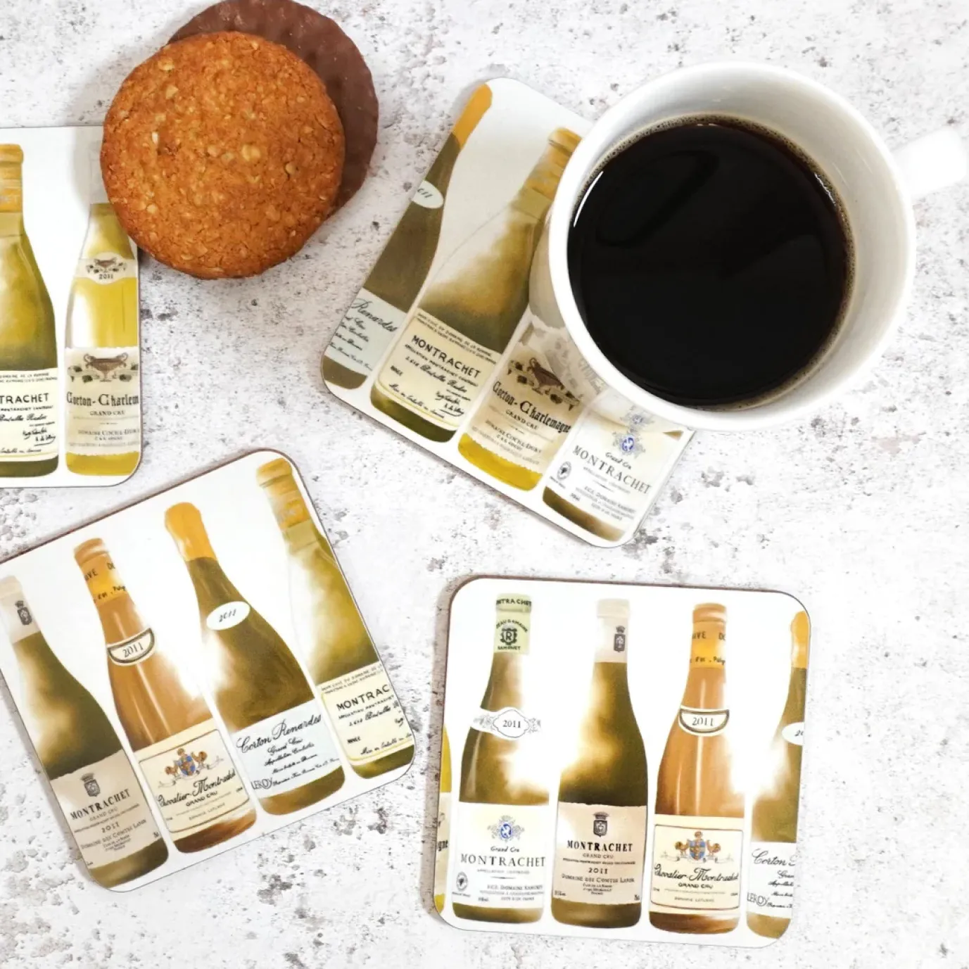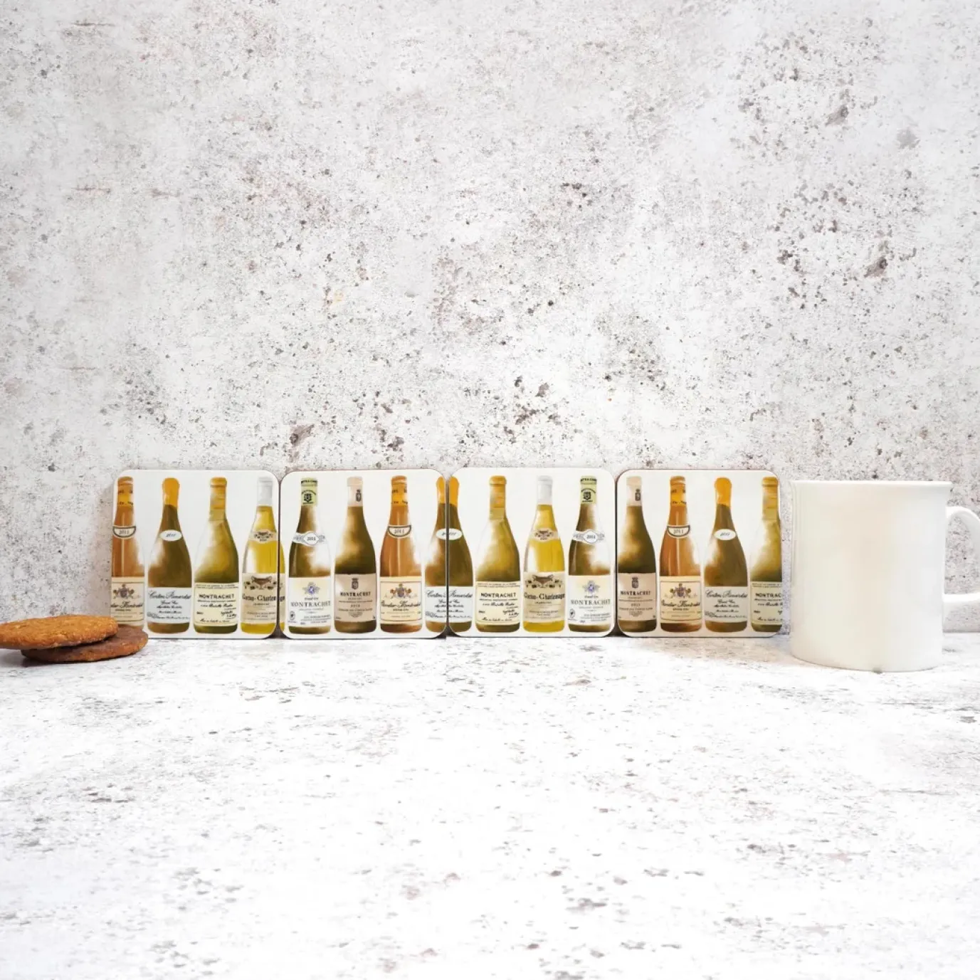 This coaster set is the perfect gift for white wine lovers. Set of 4. Each mat is 4in x 4in.