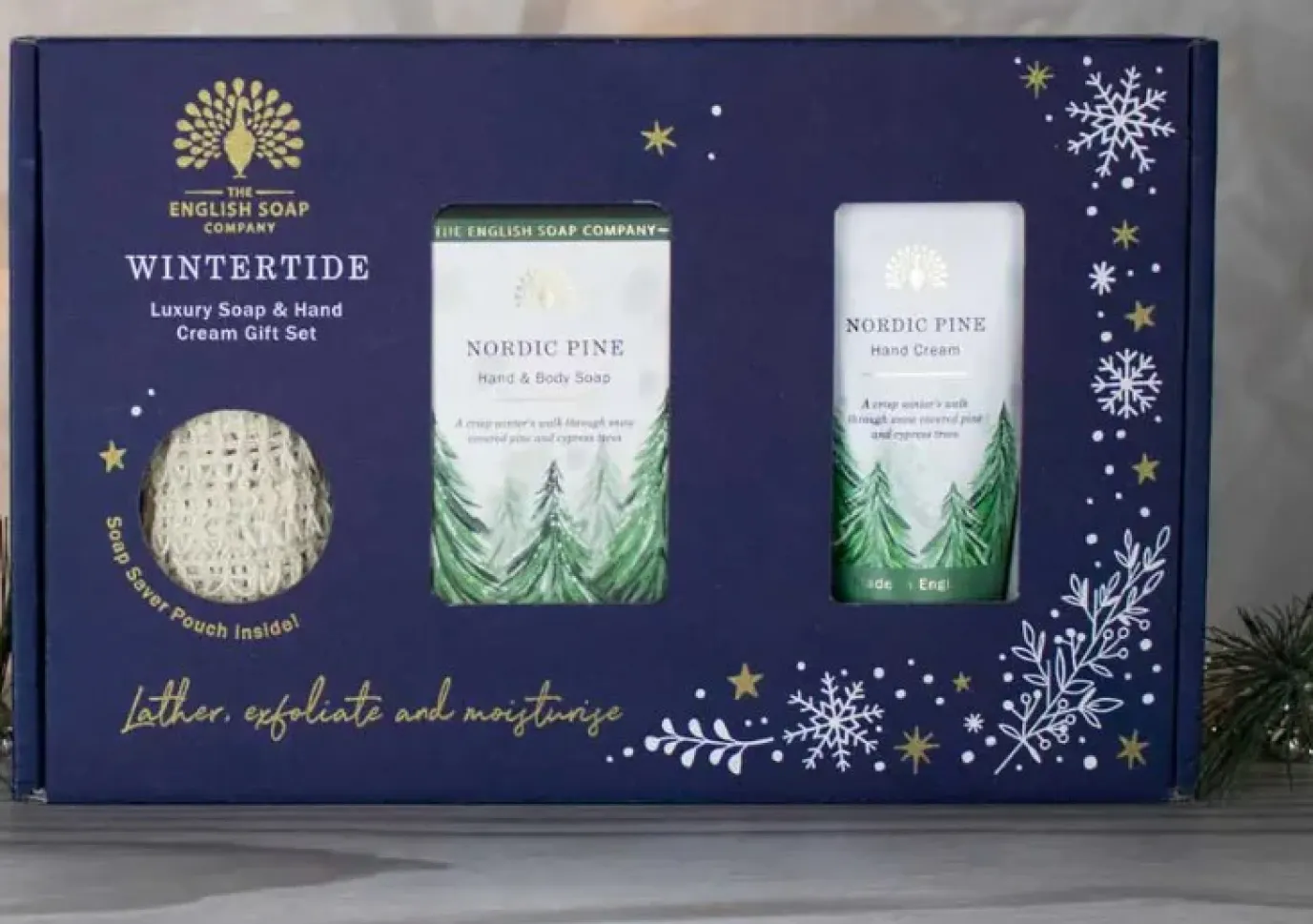 Nourish, cleanse and protect with a 190g soap bar, 75ml hand cream and Zero Waste Soap Saver Pouch that takes lathering to new heights. Presented in a beautiful, fully recyclable gift box and decorated with captivating illustrations inspired by wintertime. This gift set will surely wow its recipient with long-lasting products and exquisite fragrance.