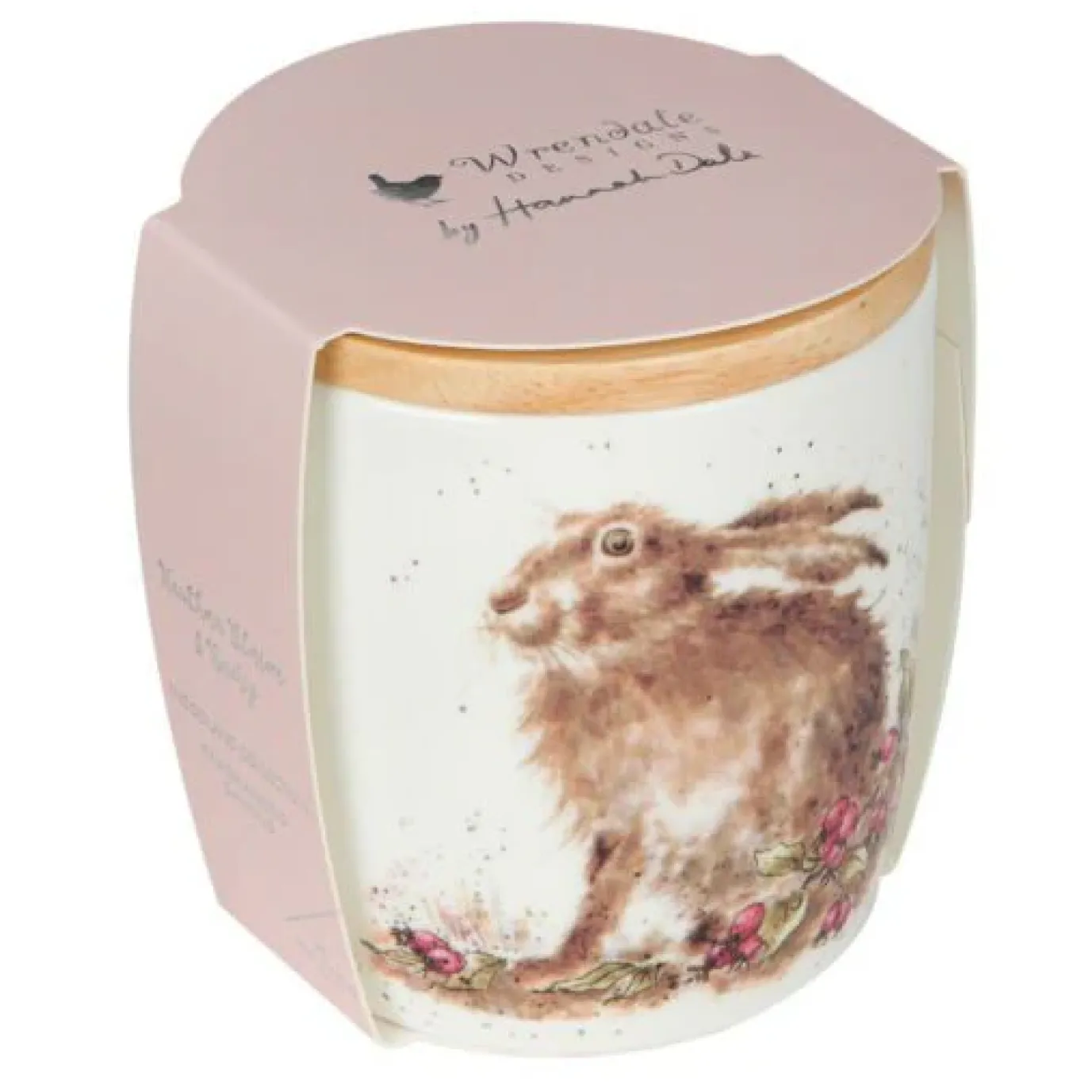 This quality ceramic candle jar is adorned with a charming Wrendale illustration and has been designed to be reused once the fragrance has been enjoyed. The candle will burn for up to 62 hours. The candle has a thick wooden lid, branded with the Wrendale logo, designed to act as a base when the candle is in use to protect your surfaces. Â